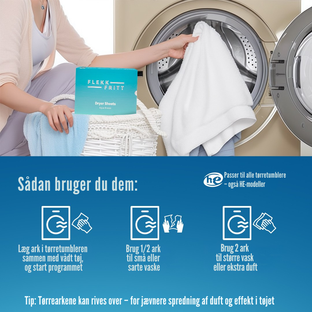 Flekkfritt Tørretumblerark Aqua Breeze 50 stk – op til 100 vaske